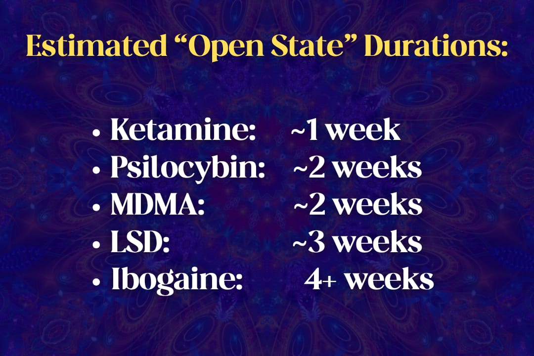 Schedule therapy, journaling, or breathwork sessions while the brain remains open.